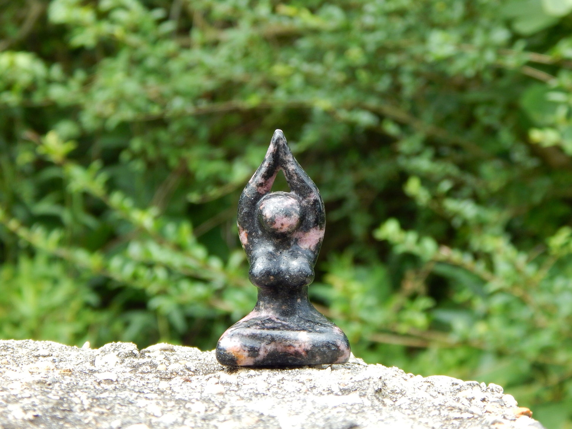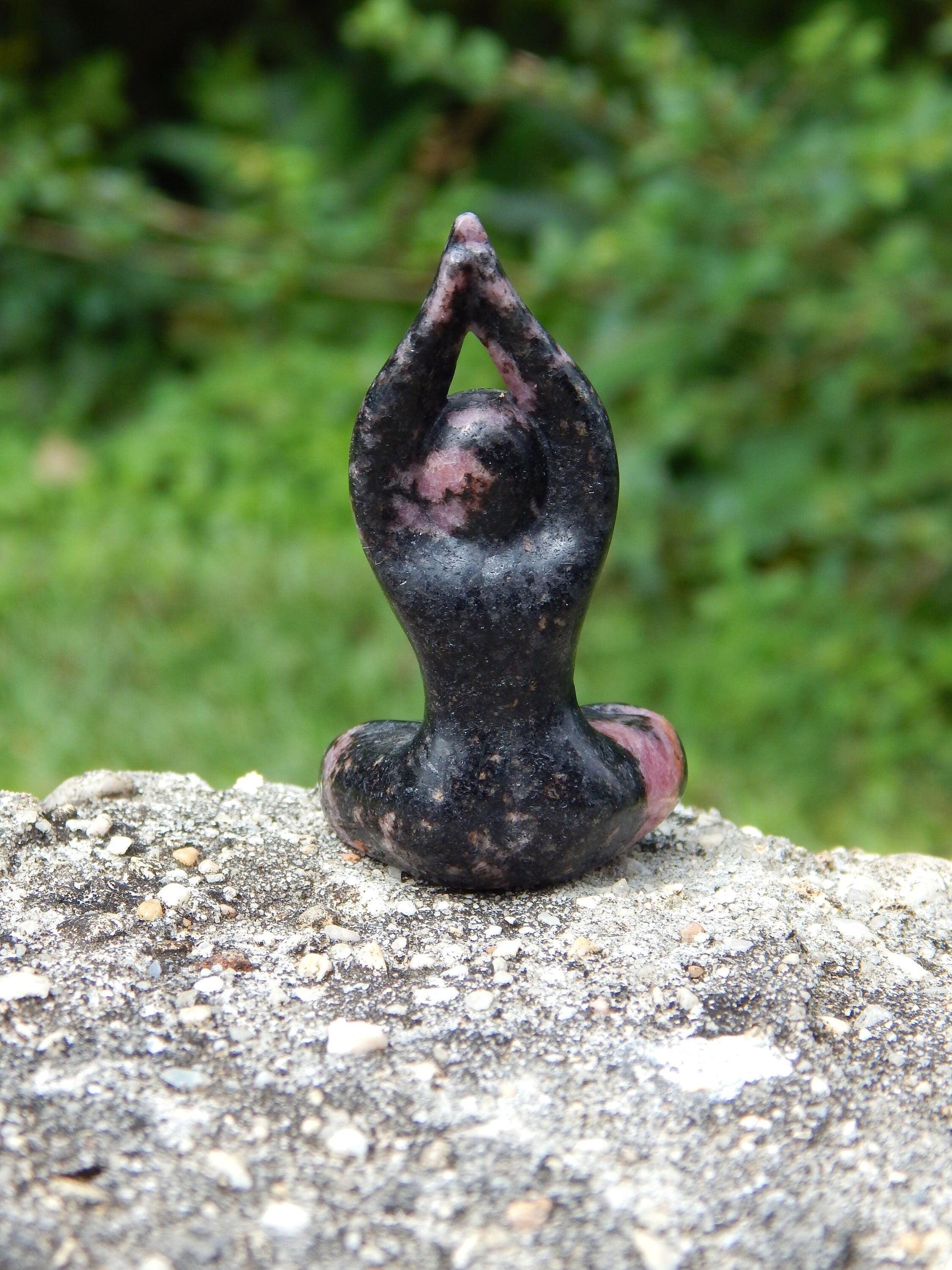 Gemstone yoga lady, this awesome rhodonite lady statue would be a great ready to ship unique gift for a yoga teacher!