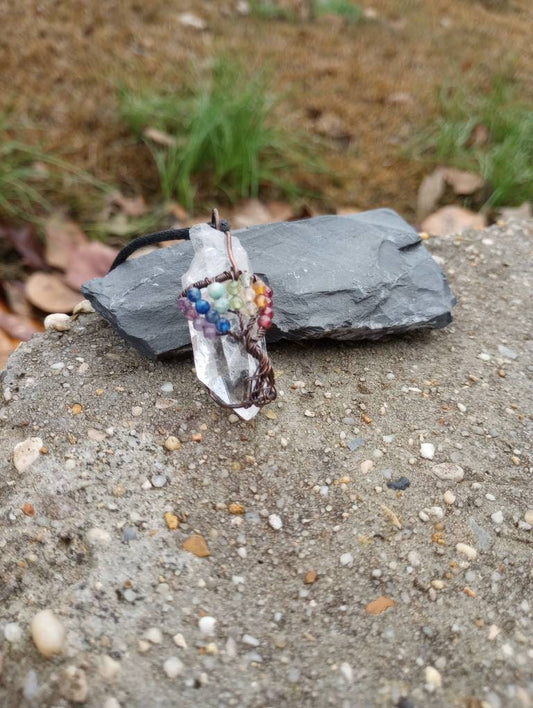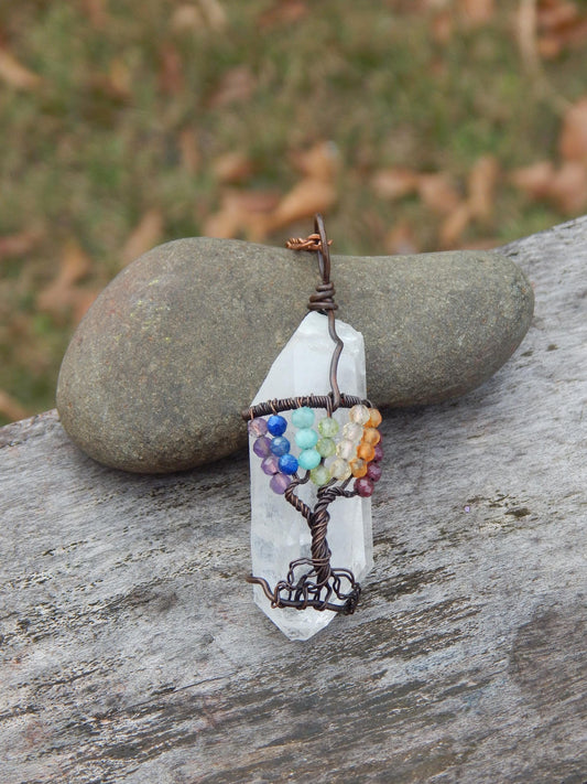 Chakra tree of life crystal wire wrapped pendant