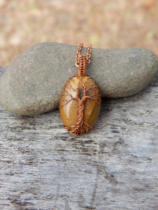 Tiger eye tree of life pendant